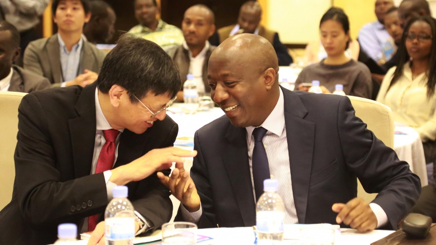 Prime Minister Edouard Ngirente interacts with Shenggen Fan, Director General of the International Food Policy Research Institute (IFPRI), during the official launch of the 2019 Global Food Policy Report in Kigali on Friday May 3 2019 at Kigali Serena Hotel. The report recommends that governments increase financial and policy support to rural communities in order to address the problem of a big number of the world’s poor and malnourished people living in rural areas and dependent on the agriculture for food and livelihoods