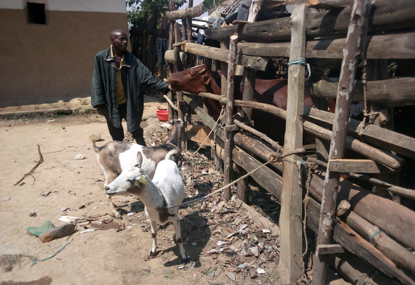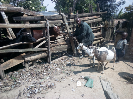 HABIRYAYO Jean avec deux vaches et deux chèvres